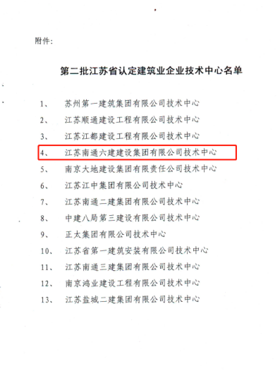 南通六建技術(shù)中心于2009年12月成功認定為江蘇省建筑業(yè)企業(yè)技術(shù)中心。作為集團技術(shù)開(kāi)發(fā)、技術(shù)創(chuàng )新的統籌部門(mén),立足于以工程為載體,以服務(wù)工程為首要職責,進(jìn)行專(zhuān)項技術(shù)研究、技術(shù)攻關(guān)和重大項目的施工技術(shù)策劃,為集團發(fā)展提供堅實(shí)的技術(shù)支持和技術(shù)儲備。