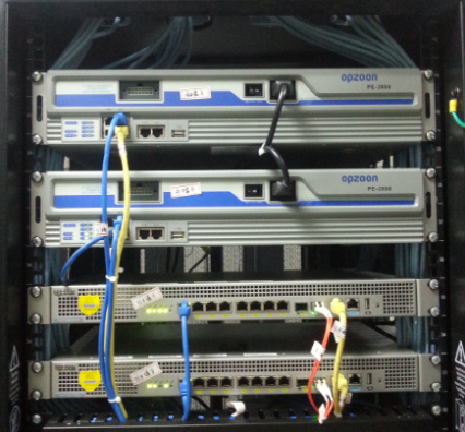 機房入戶(hù)網(wǎng)絡(luò )為電信聯(lián)通雙線(xiàn)百兆光纖。通過(guò)銳捷1000M網(wǎng)關(guān)雙路協(xié)調,負載均衡入戶(hù)。網(wǎng)關(guān)內部含有防火墻系統,能對入口處的攻擊、病毒等做初步攔截。