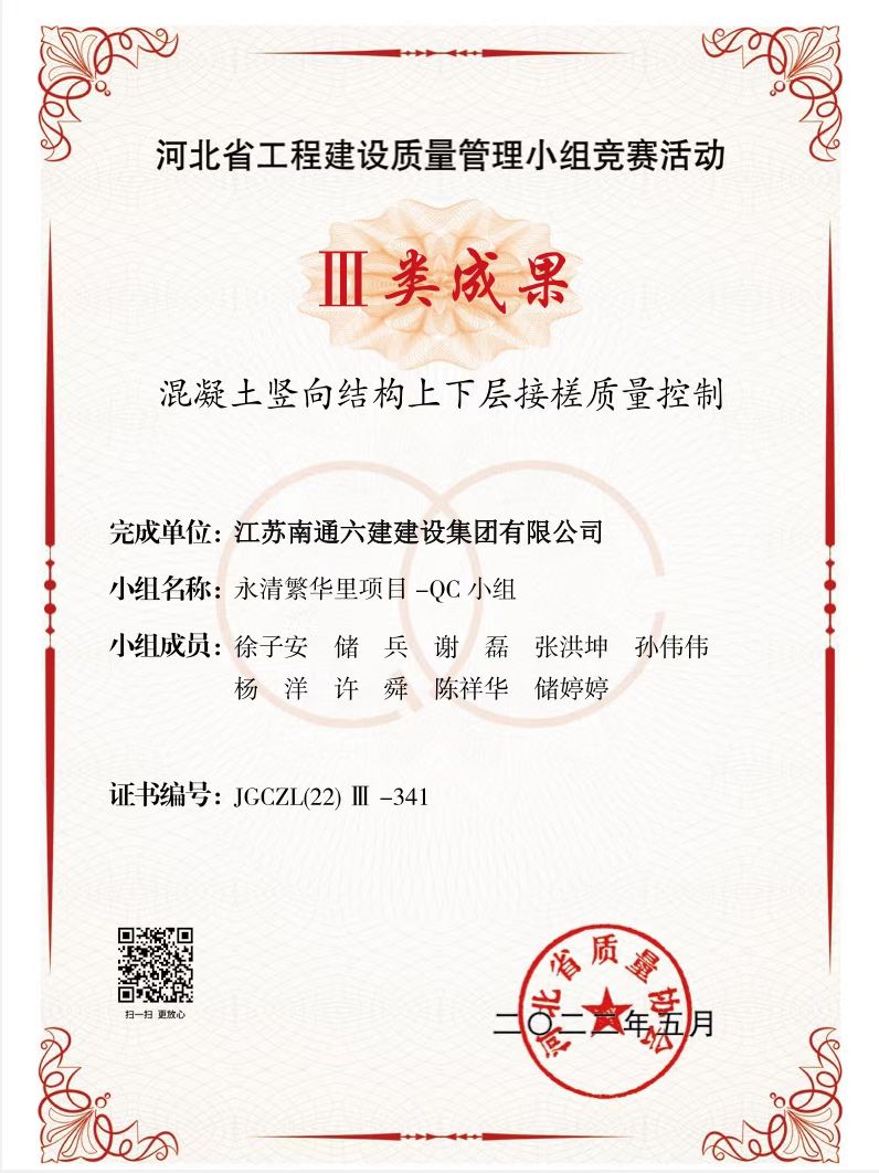 8 | 永清繁華里-混凝土豎向結構上下層接槎質(zhì)量控制 | 河北省三類(lèi)成果 | 2022.5 | 天津公司 |