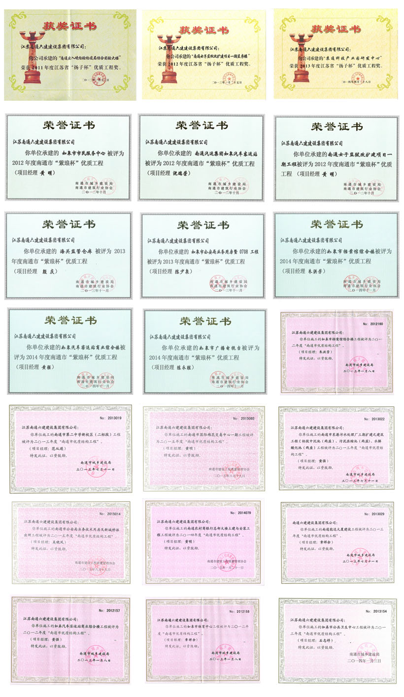 三十多年來(lái),公司始終以“建優(yōu)質(zhì)精品,利國計民生”企業(yè)使命,孜孜以求,毫不懈怠,憑借優(yōu)質(zhì)的施工質(zhì)量,優(yōu)良的信譽(yù),在南通建筑行業(yè)扎下了堅實(shí)的基礎。近三年累計施工的有影響項目30多項,獲得省優(yōu)質(zhì)工程3項,南通市 “紫瑯杯”優(yōu)質(zhì)工程7項,南通市優(yōu)質(zhì)結構工程5項,省級文明工地7項。代表工程有:如皋紅星花園北區二期5#地塊,建筑面積200000 m2;如城鎮新民花苑三期工程,建筑面積188950 m2;如皋市中央商務(wù)區四期工程,建筑面積100000 m2;如皋市GJ2010-133#安置房一期工程,建筑面積61030 m2;如皋市體育中心,建筑面積58000 m2;如皋汽車(chē)客運站商業(yè)綜合樓,建筑面積17352 m2;南通能達大廈,建筑面積120000 m2;南通智慧之眼項目,建筑面積70000 m2;南通農村商業(yè)銀行總部大樓,建筑面積58000 m2;同州視訊三網(wǎng)融合產(chǎn)品標準廠(chǎng)房一期主體工程,建筑面積90000 m2;南通市第二中學(xué)新校區,建筑面積21712 m2;福建平潭綜合實(shí)驗區中原小區農民安置房工程三、四組團,建筑面積184483 m2 ;南通星瀚星光域項目,建筑面積80000m2 ;寧啟線(xiàn)如皋站站前廣場(chǎng)工程,施工面積16694m2。其中創(chuàng )省優(yōu)質(zhì)工程分別是:如皋體育中心工程、如皋公安局業(yè)務(wù)用房暨0708工程和南通監獄和南通女子監獄民警用房工程。