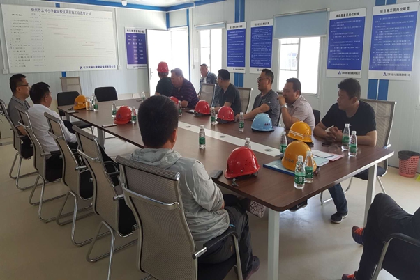 5月21日上午,徐州市建設局仇玲柱局長(cháng)、市安監站范厚春站長(cháng)、云龍區建設局李軍局長(cháng)一行蒞臨濟南總部承建的云興小學(xué)紫金校區項目,檢查指導掃黑除惡專(zhuān)項斗爭工作。