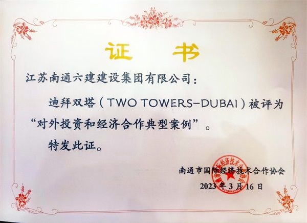南通市國際經(jīng)濟技術(shù)合作協(xié)會(huì )主辦的“南通走出去行業(yè)年會(huì )”已成為全市對外投資合作行業(yè)品牌活動(dòng),是一年一度全市境外投資企業(yè)、對外承包工程企業(yè)、對外勞務(wù)合作企業(yè)負責人和海外項目經(jīng)理共商合作、共敘友誼、共謀發(fā)展的行業(yè)盛會(huì ),深受政府主管部門(mén)、商協(xié)會(huì )、“走出去”企業(yè)和相關(guān)專(zhuān)業(yè)機構、服務(wù)商好評。會(huì )上發(fā)布南通最美外經(jīng)人、南通市對外投資和經(jīng)濟合作經(jīng)典案例,集團承建的迪拜雙塔被評為“對外投資和經(jīng)濟合作典型案例”。
